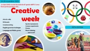 Dal 24 al 28 Novembre la scuola secondaria si trasformerà in un laboratorio di idee e talenti: è il momento della settimana della creatività.
